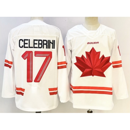 - Men Canada Hockey #17 Macklin Celebrini White Stitched Jersey