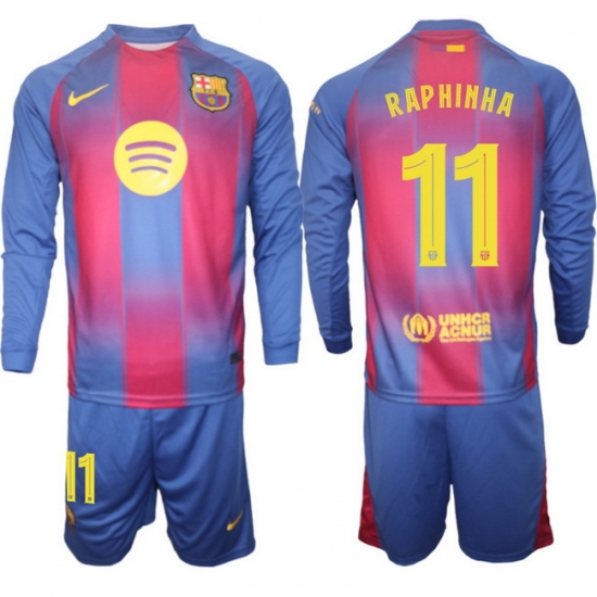 - Men FC Barcelona 2026 Soccer Jerseys Red Long #11 RAPHINHA (2)