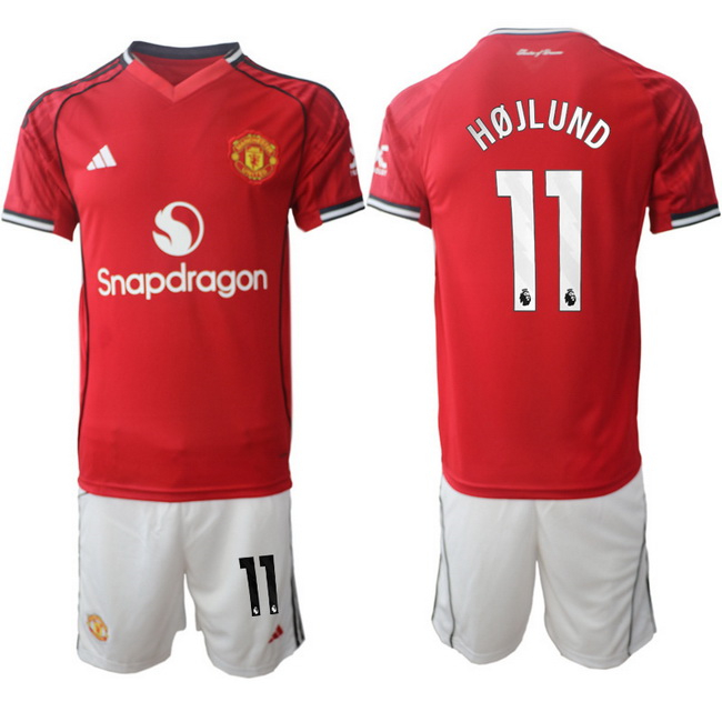 - Men Manchester United 9 Rasmus Hojlund 2025 26 Red Home Soccer Jersey Suit