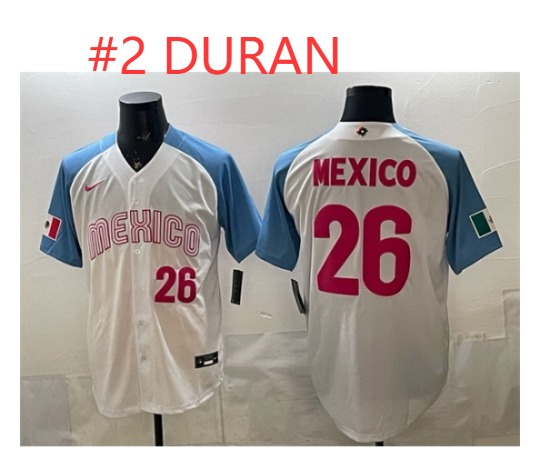 - Men Mexico Baseball #2 Duran White 2026 World Baseball Classic Home Stadium Stitched Jersey