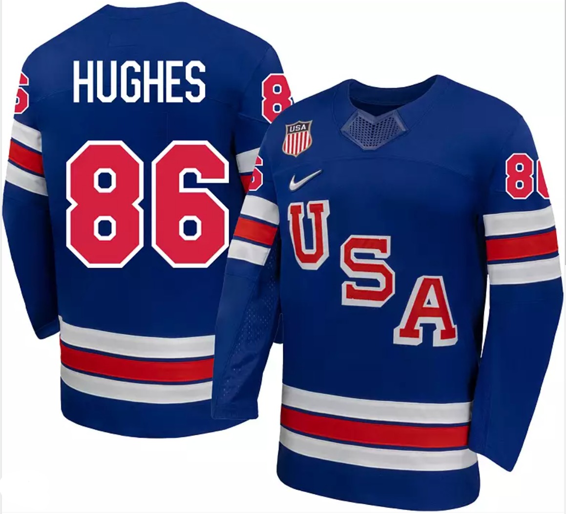 - Men's USA #86 Jack Hughes Blue 2026 Stitched Jersey