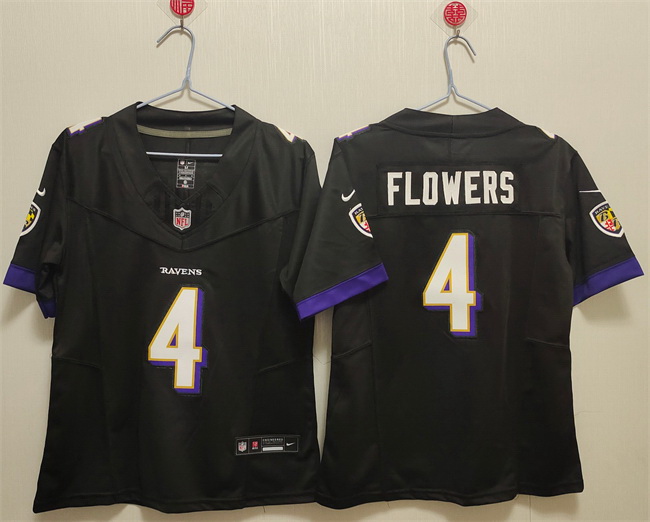 - Women Baltimore Ravens 4 Zay Flowers White Football Jersey