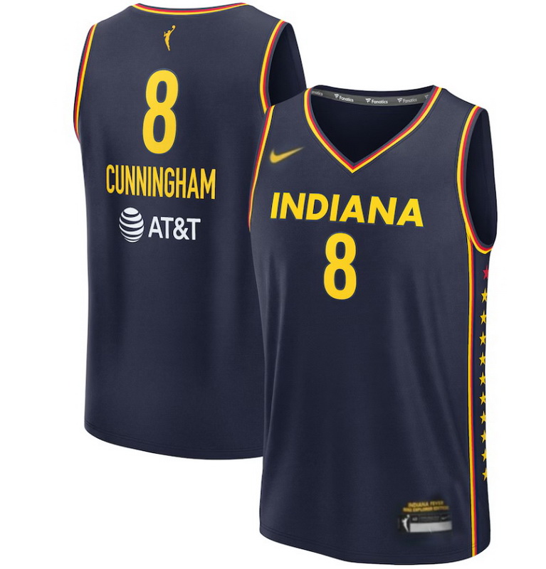 - Women Indiana Fever Cunningham #8 Blue Stitched Basketball WNBA Jersey