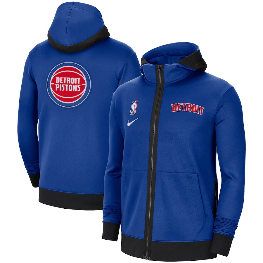 - Men Nike Detroit Pistons Blue Authentic Showtime Performance Full Zip Hoodie Jacket