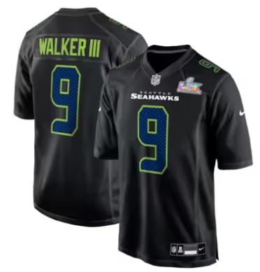 Home>NFL>2025 2026 Super Bowl LX>Seattle Seahawks>Kenneth Walker III Seattle Seahawks Nike Super Bowl LX Patch Carbon Fashion Game Jersey Black