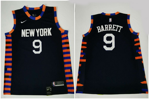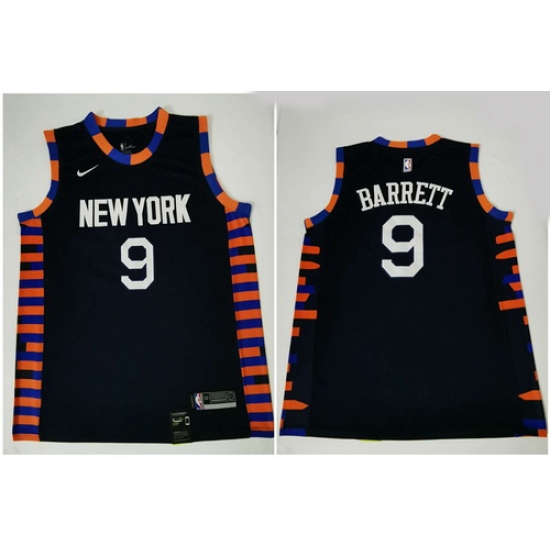 - Men New Yok Knicks 9 RJ Barrett Blue 2023 24 City Edition Stitched Basketball Jersey