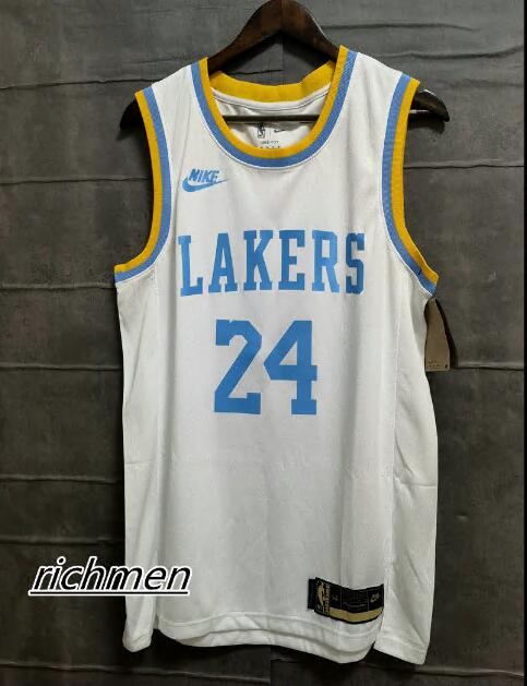 - Men Los Angeles Lakers 24 Kobe Bryant White Black Mamba Stitched Basketball Jersey