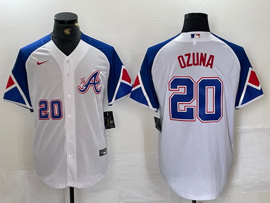 - Men Atlanta Braves 1 Ozzie Albies Split White Red Two Tone Jersey