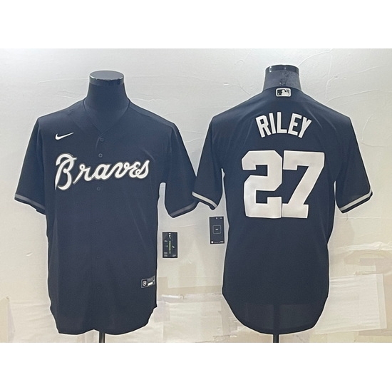 - Men Atlanta Braves 27 Austin Riley Black Cool Base Stitched Baseball Jersey