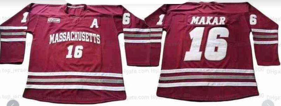 - Men COllege Hockey Masachusetts 16 Makar Red Jersey