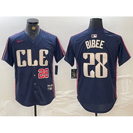 - Men Cleveland Guardians 28 Tanner Bibee Navy 2025 Alternate Limited Stitched Baseball Jersey