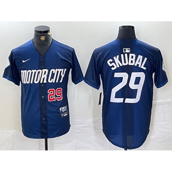 - Men Detroit Tigers 29 Tarik Skubal Navy Cool Base Stitched Baseball Jersey