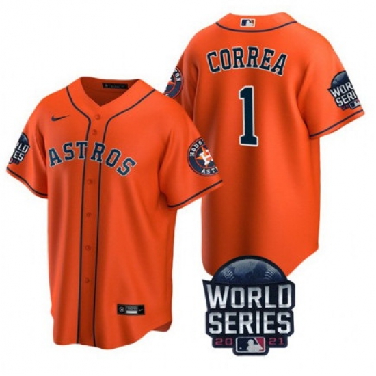 - Men Houston Astros 1 Carlos Correa 2021 Grey World Series Flex Base Stitched Baseball Jersey