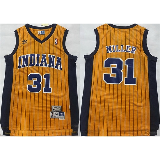 - Men Indiana Pacers 31 Reggie Miller Yellow Throwback Stitched Jersey