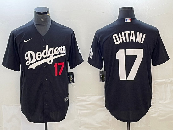 - Men Los Angeles Dodgers 17 Shohei Ohtani Blue Big Logo Cool Base Stitched Jersey
