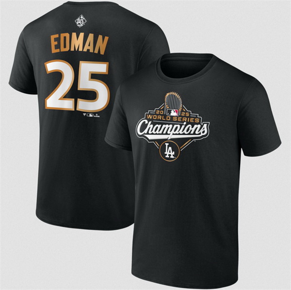 Men Los Angeles Dodgers 25 Tommy Edman Black 2025 World Series Champions Name 26 Number T Shirt