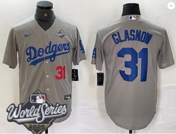 Men Los Angeles Dodgers 31 Tyler Glasnow 2025 World Series Cool Base Stitched Baseball Jersey Gray