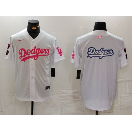 - Men Los Angeles Dodgers Team Big Logo White Cool Base Stitched Baseball Jersey 2