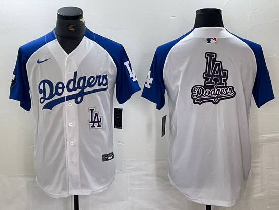 - Men Los Angeles Dodgers Team Big Logo Cream Stitched Baseball Jersey 5
