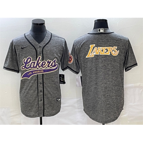 - Men Los Angeles Lakers Purple Team Big Logo With Patch Cool Base Stitched Baseball Jersey