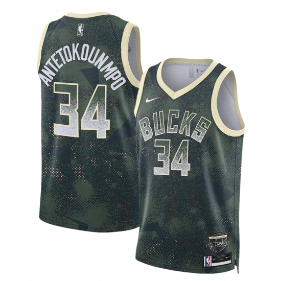 - Men's Nike Milwaukee Bucks #34 Giannis Antetokounmpo Hunter Black Authentic Jersey