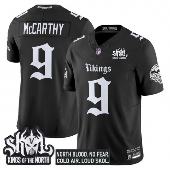- Men Minnesota Vikings 9 J J McCarthy Purple Cool Base Stitched Baseball Jersey 2