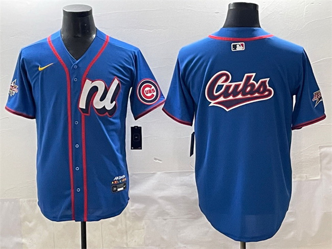 Men National League Chicago Cubs Team Big Logo Blue 2025 All Star Edition Limited Stitched Baseball Jersey