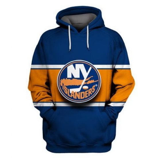 - Men New York Islanders Blue Orange All Stitched Hooded Sweatshirt