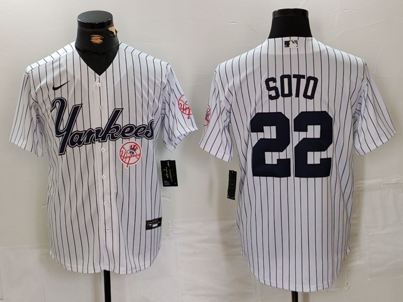 - Men's New York Yankees Big Logo White Pinstripe Cool Base Stitched Baseball Jerseys