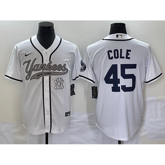 - Men New York Yankees White Team Big Logo Cool Base Stitched Baseball Jersey 42