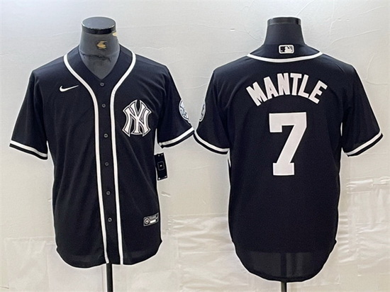 - Men New York Yankees 7 Mickey Mantle Grey Cool Base Stitched Baseball Jersey 1