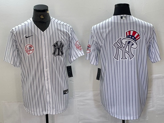- Men's New York Yankees Big Logo White Pinstripe Cool Base Stitched Baseball Jerseys