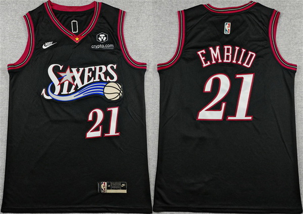 - Men Philadelphia 76ers 21 Joel Embiid Black 2025 Classic Edition Stitched Jersey