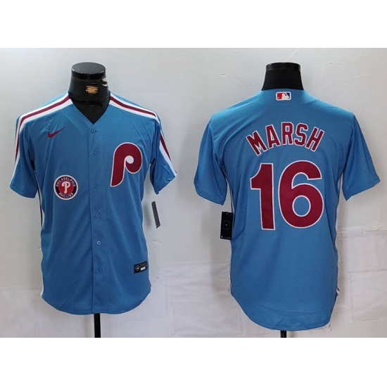- Men Philadelphia Phillies 16 Brandon Marsh White Green Cool Base Stitched Jersey 1