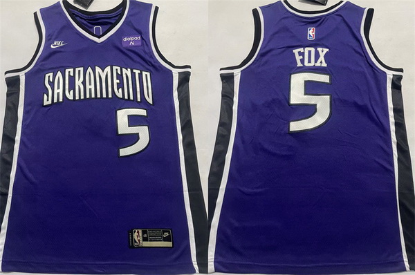 - Men Sacramento Kings 5 De 27Aaron Fox Purple 2024 25 City Edition Stitched Basketball Jersey