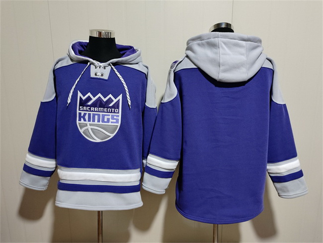 - Men Sacramento Kings Blank Blue Grey Lace Up Pullover Hoodie