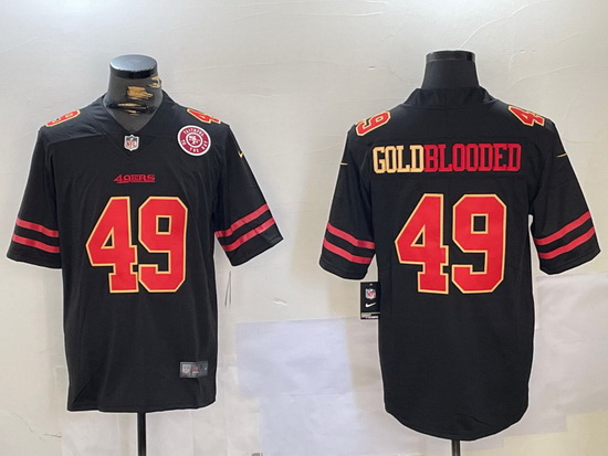 - Men San Francisco 49ers 97 Nick Bosa Red Gold With 75th Anniversary Patch Stitched Jersey