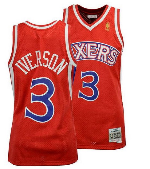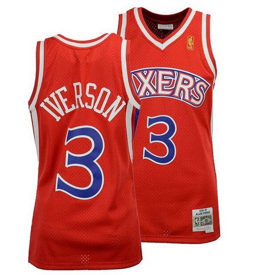 - Men 76ers #3 Allen Iverson Black White Split Fashion Stitched NBA Jersey