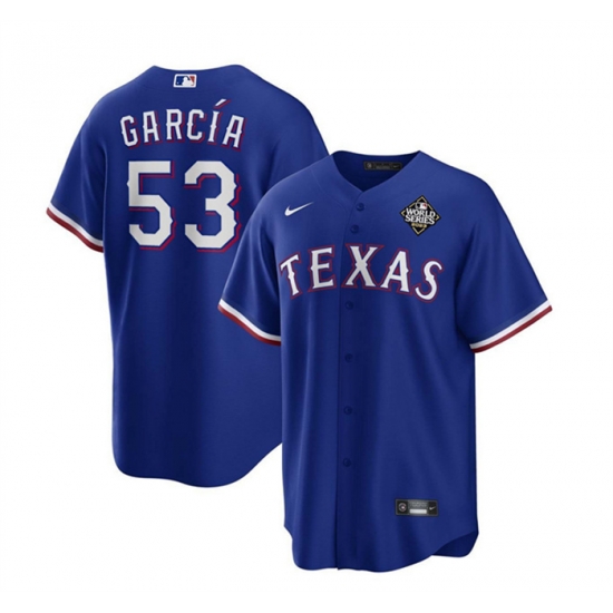 - Men Texas Rangers 53 Adolis Garcia Number White 2023 World Series Champions Cool Base Jersey