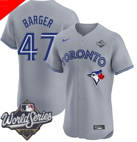 - Men Toronto Blue Jays 47 Addison Barger Cool Base Stitched Baseball Jersey Gray