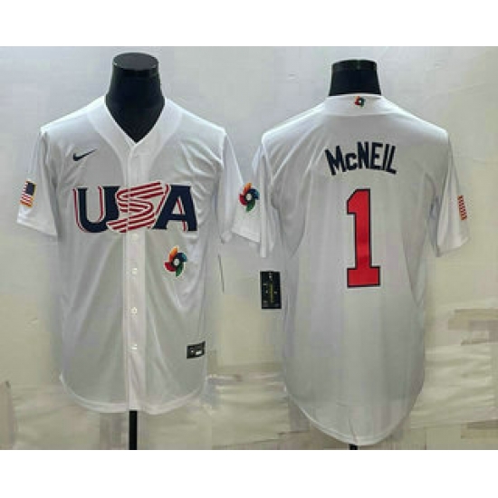 - Men USA Baseball #1 Jeff McNeil 2023 White World Classic Stitched Jerseys