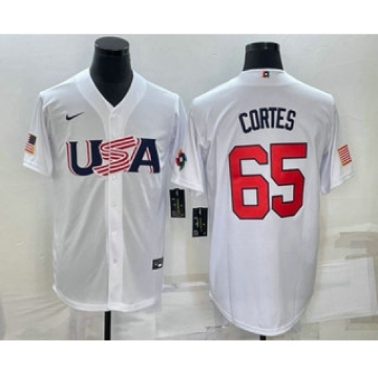 - Men USA Baseball #1 Jeff McNeil Number 2023 White World Classic Stitched Jersey 2