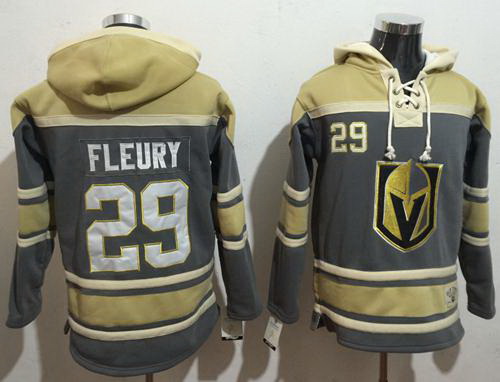 - Men Vegas Golden Knights 29 Marc Andre Fleury Grey Name 26 Number Pullover NHL Hoodie
