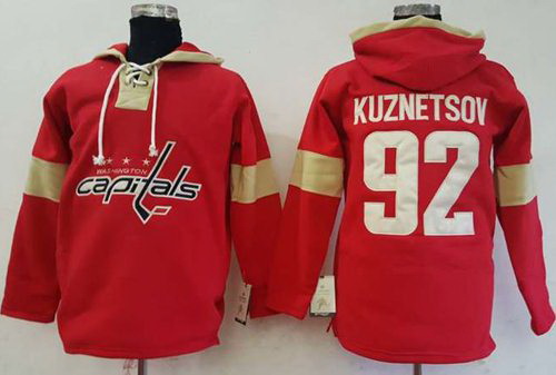 - Men Washington Capitals 92 Evgeny Kuznetsov Red Pullover Hoodie Stitched NHL Jersey