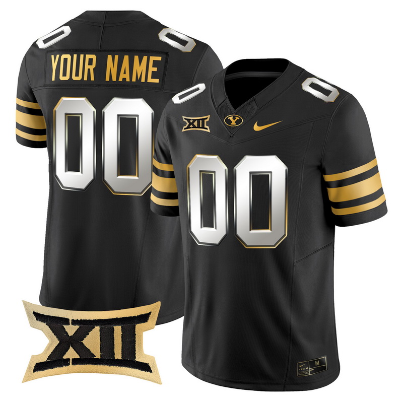 - Men Women Youth BYU Cougars 2024 Gold Vapor Limited Custom Jersey All Stitched Black Limited