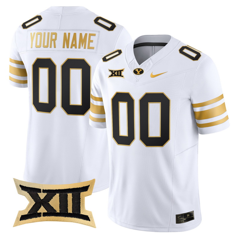 - Men Women Youth BYU Cougars 2024 Gold Vapor Limited Custom Jersey All Stitched White Gold