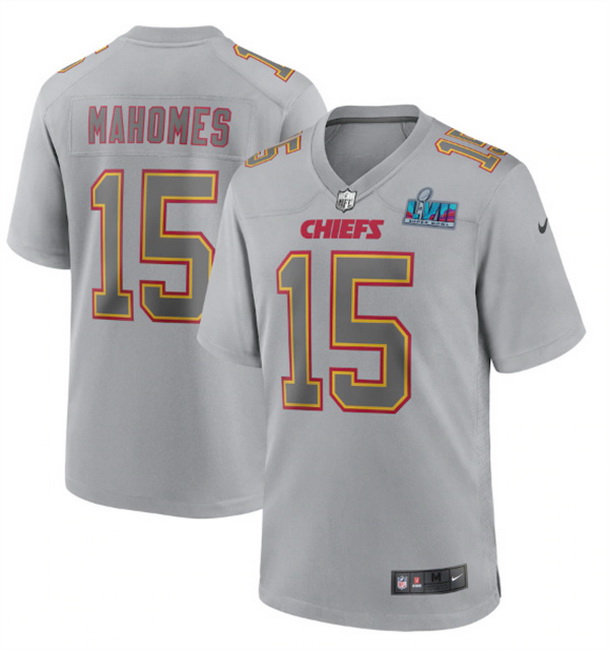 Men Women Youth Toddler Kansas City Chiefs 15 Patrick Mahomes Grey Super Bowl LVII Patch Atmosphere Fashion Stitched Game Jersey
