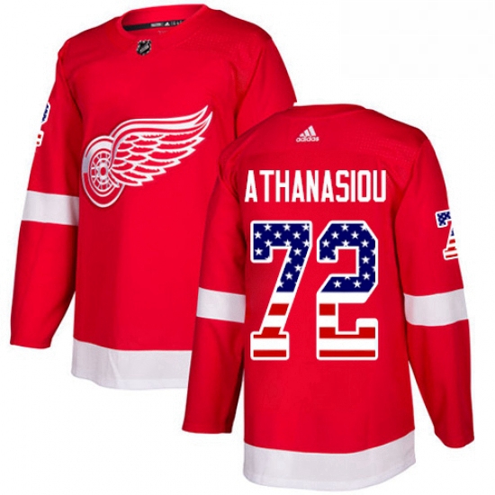- Mens Adidas Detroit Red Wings 72 Andreas Athanasiou Authentic Red USA Flag Fashion NHL Jersey