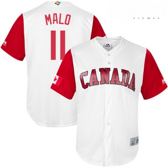 Mens Canada Baseball Majestic 11 Jonathan Malo White 2017 World Baseball Classic Replica Team Jersey