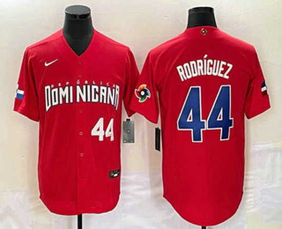 - Men's Dominican Republic Baseball #44 Julio Rodriguez 2023 Red World Classic Stitched Jersey